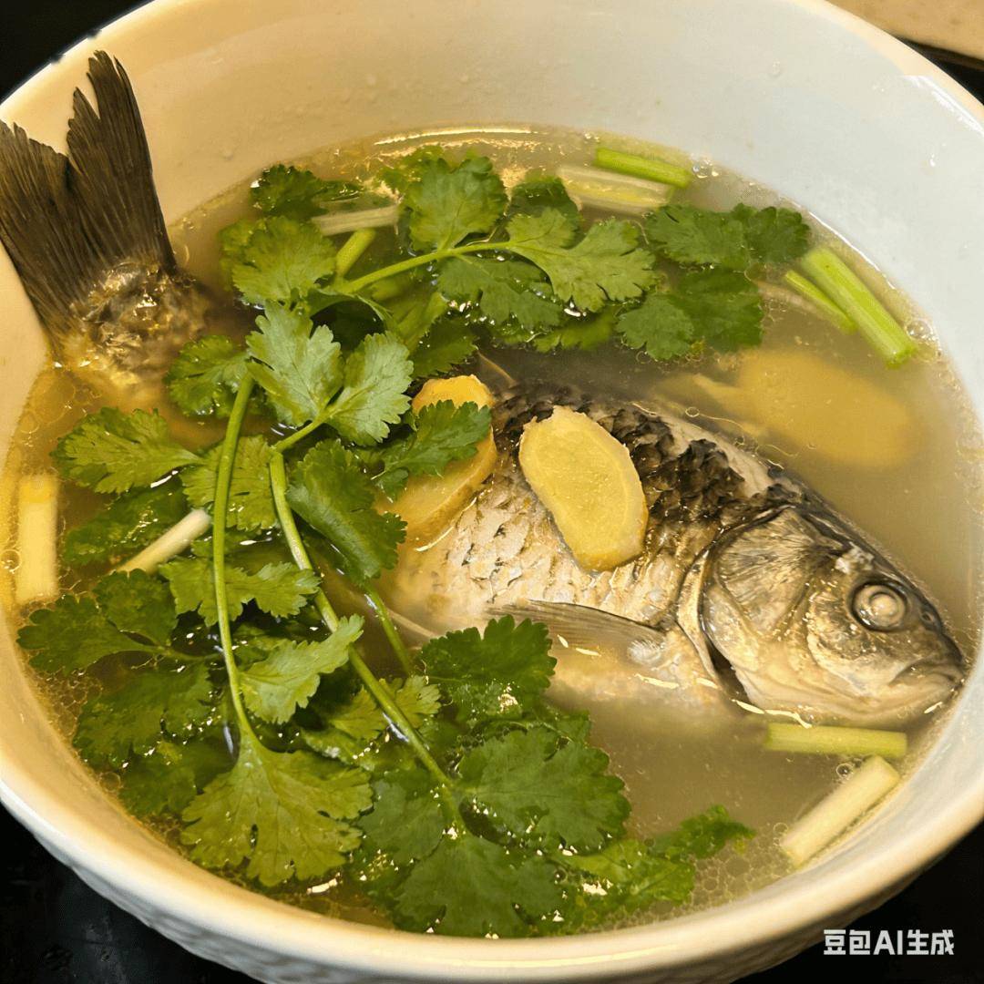 做法:鲫鱼洗净,沥水;姜切片,葱切丝,备用;香菜洗净,切成1厘米长大小,备用;锅内适量油,鲫鱼下锅,煎至两面金黄,加少许料酒去腥,加1L冷水及生姜片,小火炖鱼至鱼汤奶白色;放入香菜再炖5分钟,加葱丝、食盐调味即可。