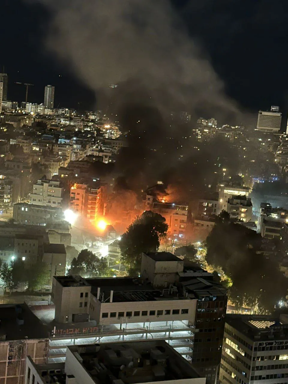 伊方披露图片显示以军总参谋部总部大楼遭袭并燃起大火(央视新闻客户端报道配图)