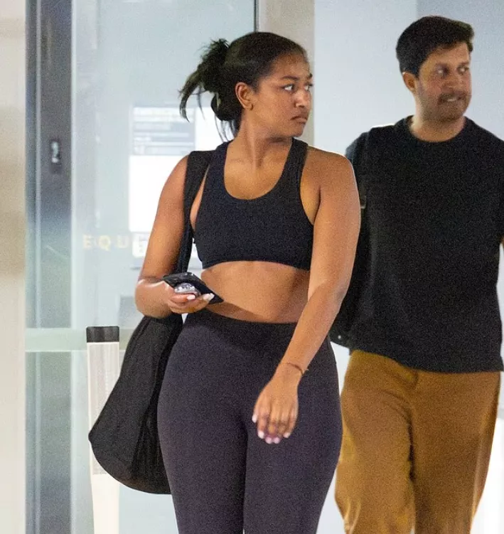 当地时间2月26日,美国前总统贝拉克·奥巴马的24岁女儿萨莎被拍到现身加利福尼亚,她挎着一个超大的旅行包,还穿了一双人字拖,正从西好莱坞一家豪华健身房走出来。