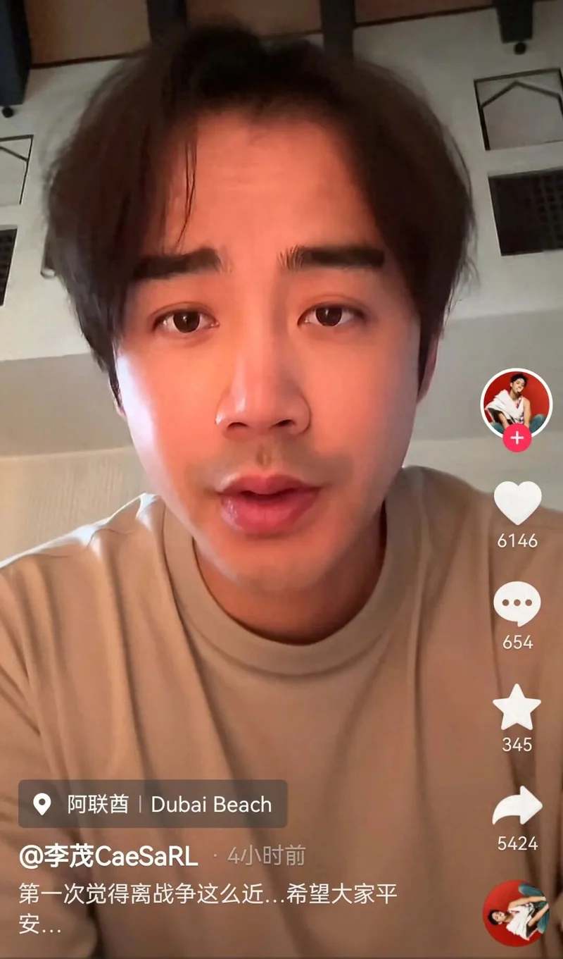 李茂说,战争导致迪拜的朱美拉海滩、机场、帆船酒店等多处受到影响,“想回家”。视频中,他祝愿在阿联酋或中东地区旅行、工作、生活的同胞能够平安。