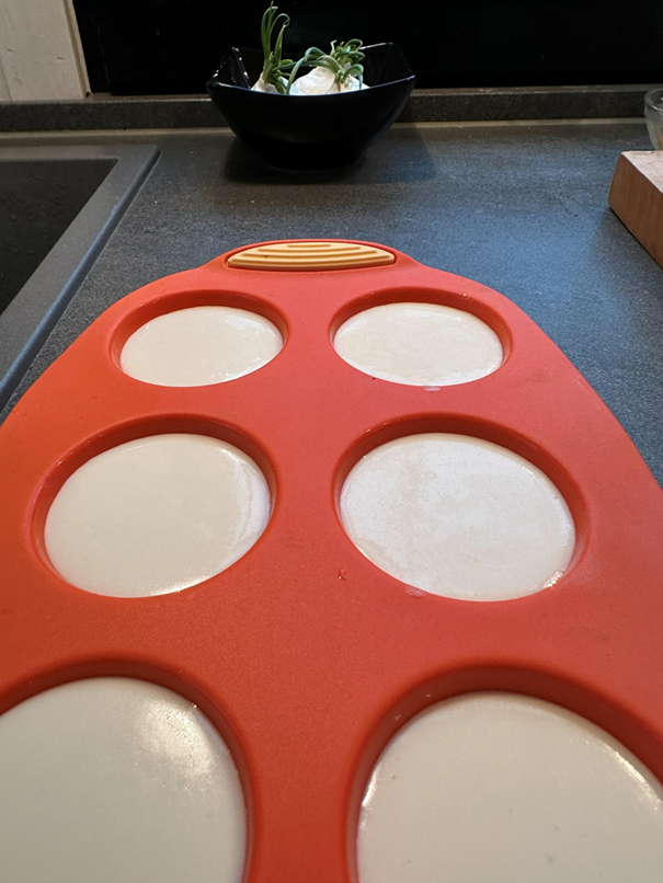我端着咖啡,看见先生拿进来一盆面糊,倒进烤盘里。昨晚,我就在花园里看到了这盆白乎乎的东西,忘了问他是什么。其实,问了也没用,他总是爱回我“保密”。