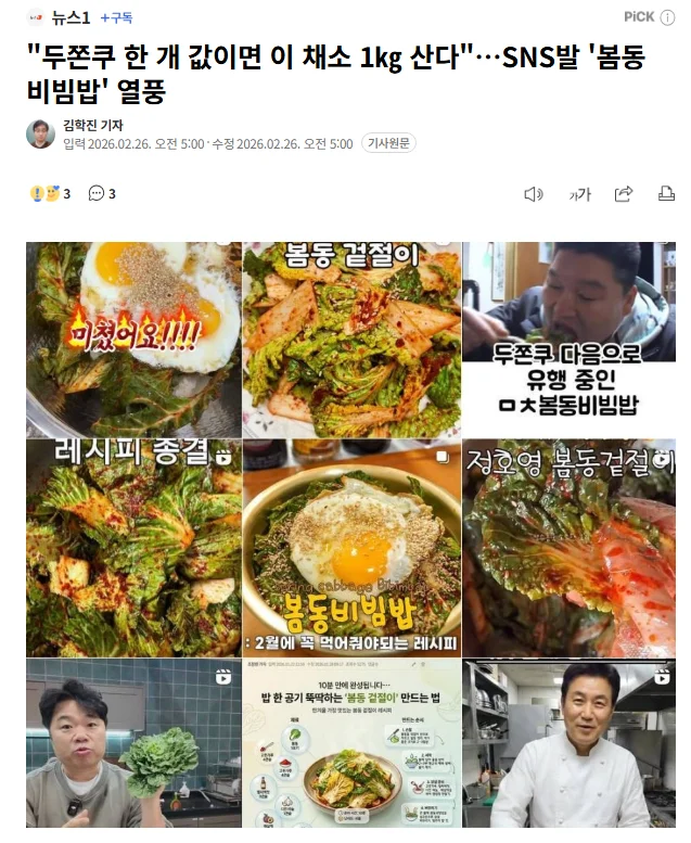 最近,以社交媒体平台和韩国网络社区为中心,“春白菜拌饭”迅速崛起成为当季热门菜单。