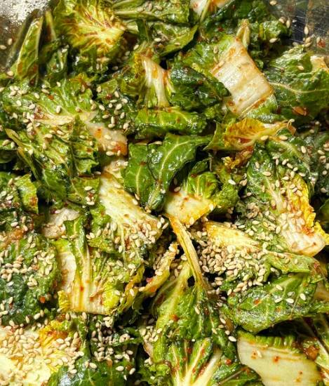 春白菜是冬季种植的白菜,主要产于韩国全罗南道的珍岛、莞岛、海南等西南海岸,一般被用来做凉拌菜。它的特点是叶子重叠但不形成紧实的菜心,像花一样散开,口感比普通白菜更脆,甜味也更浓。