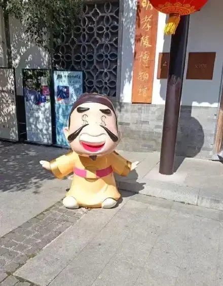 近日,南京明孝陵博物馆门口陈列的一对朱元璋与马皇后主题玩偶,因造型设计引发争议。有游客认为,玩偶形象与博物馆庄重氛围不符,并对具体设计提出了质疑。 28日,有游客向上游新闻记者反映,馆前朱元璋玩偶的眼睛形状类似美元符号,一旁的马皇后玩偶则是光脚形象,被认为不够庄重。另一游客表示,她未能找到专门投诉渠道,已通过问卷形式向馆方反馈,认为此类设计不妥,“即便眼睛造型并非美元符号,将历史人物眼睛刻画成该模样也难以接受。”