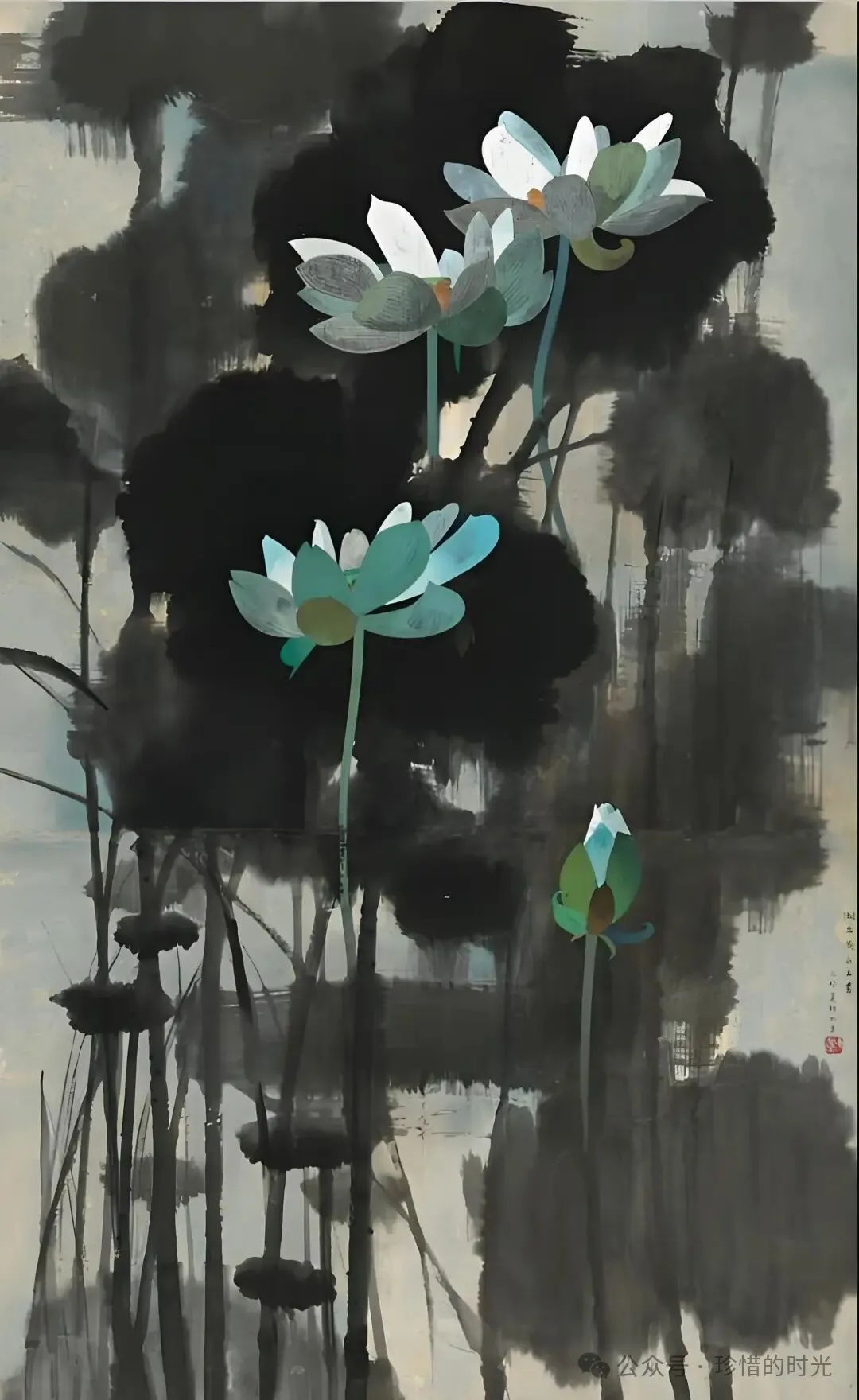 这一幅是早年经典作品,笔墨老辣酣畅淋漓,气韵生动,意境开阔,收藏价值极高,是他荷花系列里的传世之作。