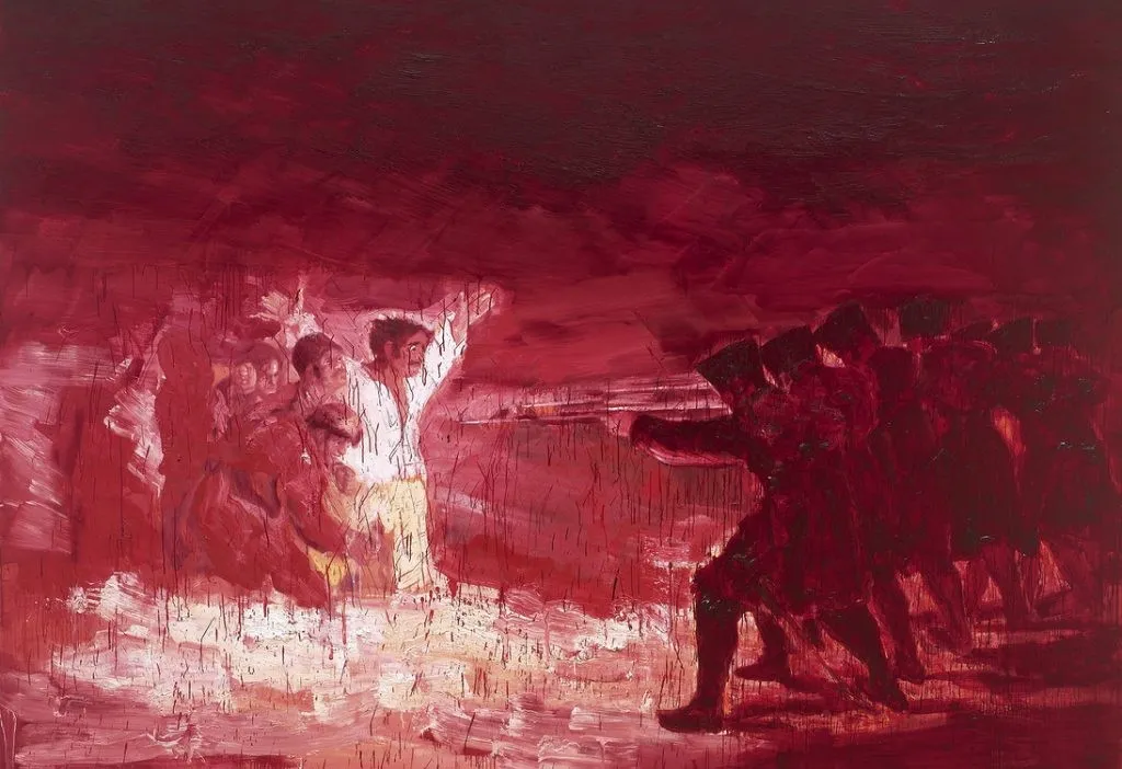 最近看到广东和美术正在举办严培明的展览,引发我的一点兴趣,以此展开谈谈他的作品。严培明是活跃于欧洲(确切说活跃于法国和意大利)艺术舞台上辨识度很高的华裔画家。由于总是画大尺寸作品,内容较为深沉,营造出某种压迫性的观看体验。然而,在强烈的视觉表象之下,其创作长期陷入图像符号化,所谓的表现主义张力,实质是不断自我复制的视觉惯性,所谓的政治思考与人文关怀,也都是一种自我安慰,其创作大多是从众多他觉得有意义的图像里寻找一种和自身审美契合点,并以此对图像进行转译,这些足显示其内容的苍白与局限。严培明的绘画以强度替代深度,以体量替代质量,以姿态替代思想。其形式语言缺乏内在演进,内容空洞,持续数十年的创作并未带来语言的深化与观念的推进。