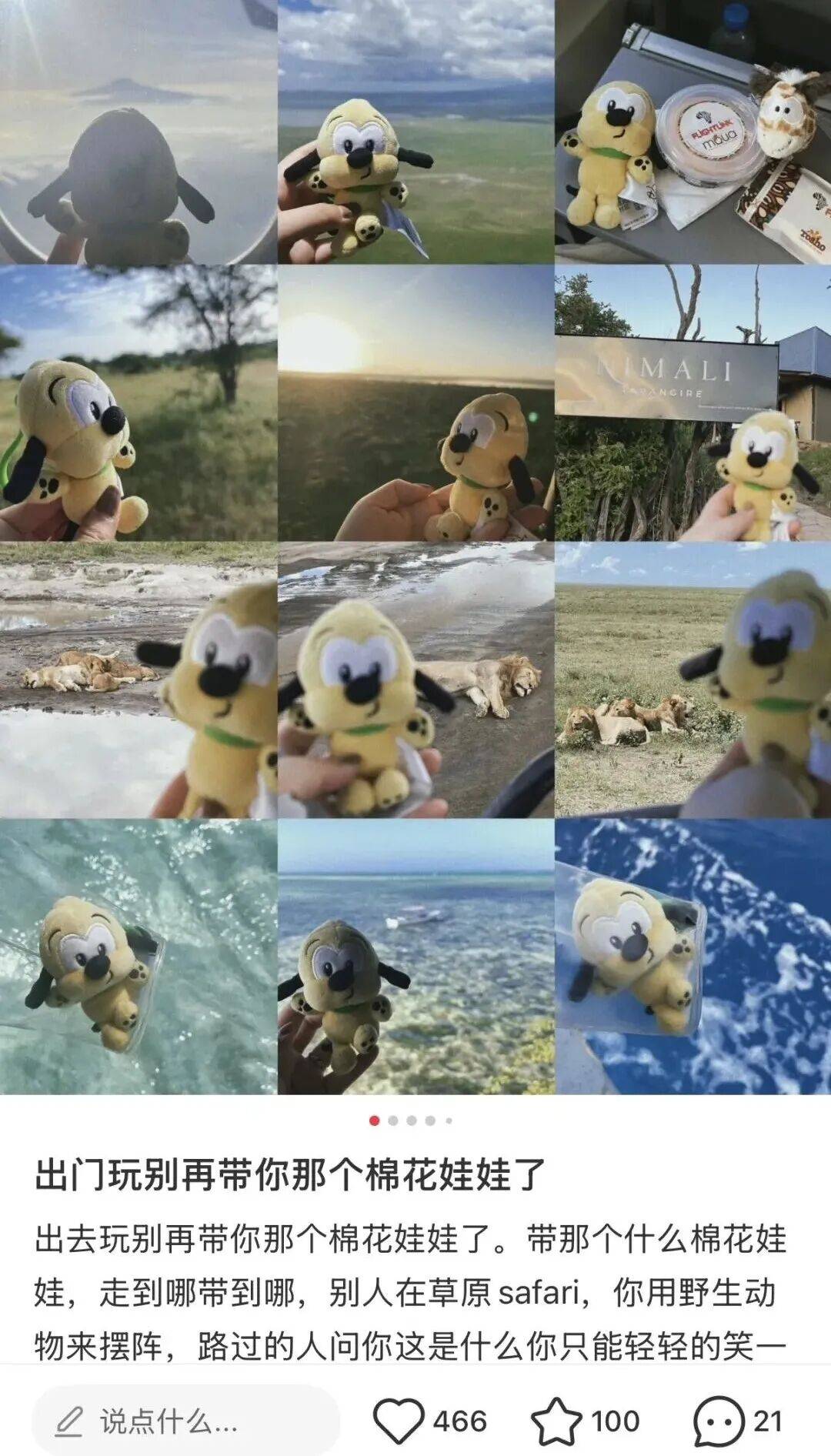 一趟出行下来,年轻人自己的照片通常没时间选,但娃的转场视频三下五除二就剪出来了。他们将与玩偶的照片、视频分享出来,发现:收到的赞比我自己的照片都多!