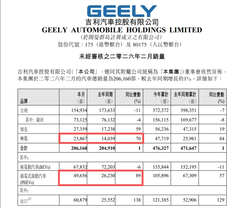 2月成为汽车行业的消费淡季,但仍有部分车企表现突出。比如,吉利旗下高端新能源汽车品牌极氪,2月销量同比增长70%至2.39万辆。