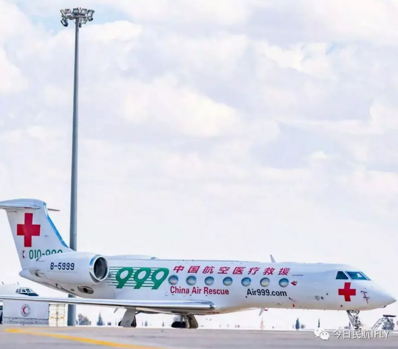 据《今日民航IFLY》杂志介绍,B5999号飞机属北京市红十字会急诊抢救中心,该中心负责人介绍道,这架飞机机型为湾流G550型公务机,是中国首架航空医疗救护专机,于2018年7月正式交付,经过湾流专业团队的改装,配备有完善的医疗设备。