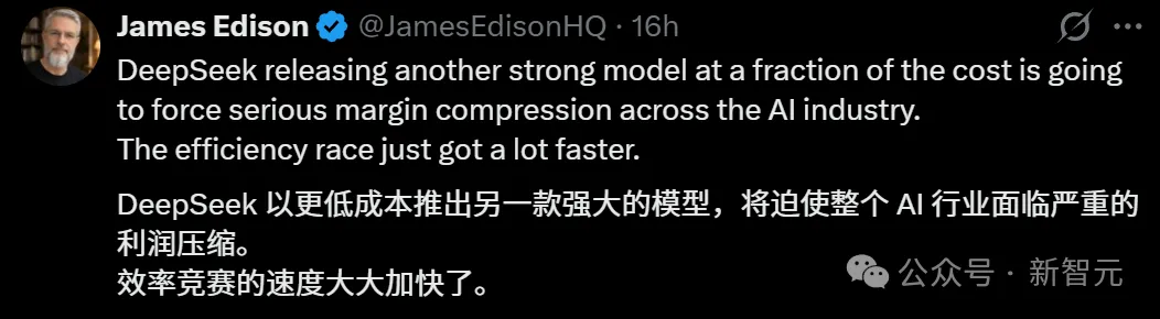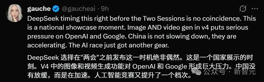 网友称,「V4 将对 OpenAI 和 Google 形成巨大压力。中国没有放缓,而是在加速。」