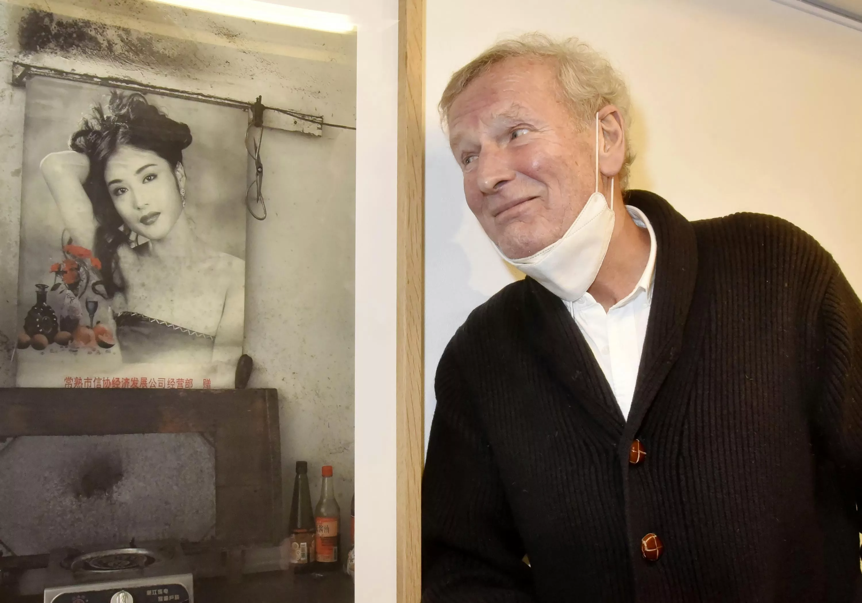 “用眼神、用情感、用我的感受来交流。”?罗伯特就这样带着相机和三脚架,通过翻译介绍身份和意图后,开启了自己的拍摄之旅。烧水壶、蜂窝煤、木方桌......甚至是卷边的迎客松图,许多老一辈的中国人都能在他的照片里找到似曾相识的记忆。看着这些画面,像是窥探了藏在书柜深处的老相册。罗伯特在拍摄过程中只用相机和三脚架,他会观察人物的神情举止,屋中的装饰,生活的痕迹。
