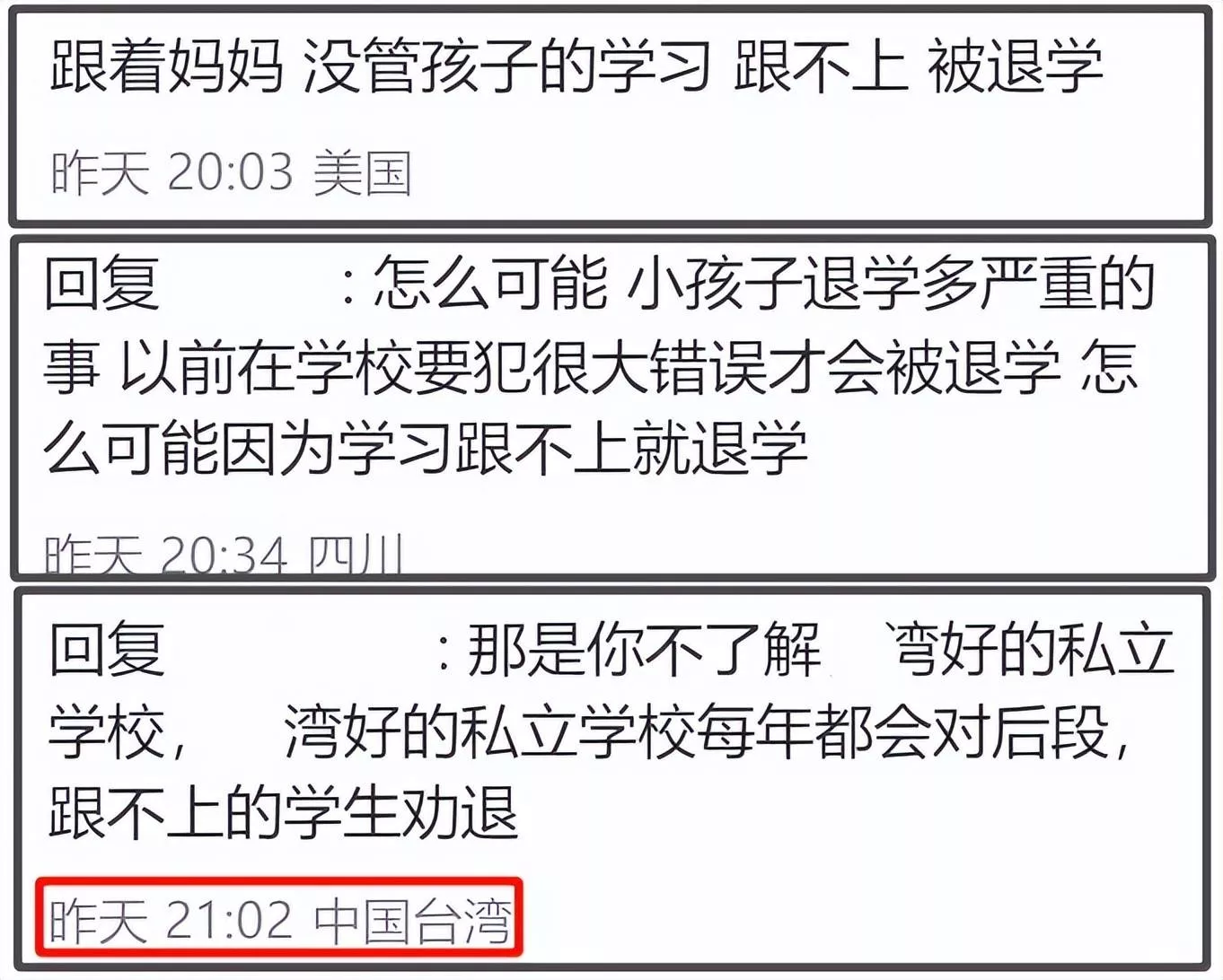 汪小菲称原来的国际学校是台湾数一数二的好学校,这点从品冠儿子也在这里念书就能看出来,起码学校的家长圈层就不一般,评论区也有网友现身爆料,说学校管理也很严格。