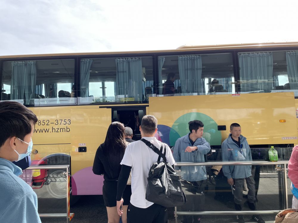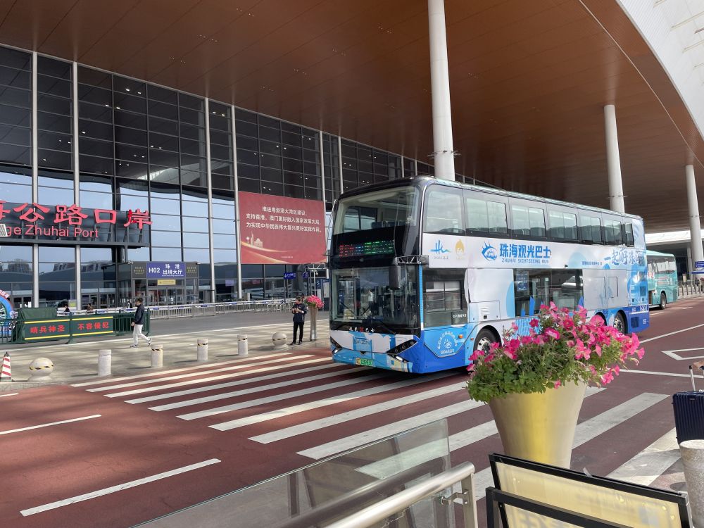 我来到珠海人工岛。过了出境口岸,坐电梯买票(58元)上巴士, 很快全车客满即启程出发。