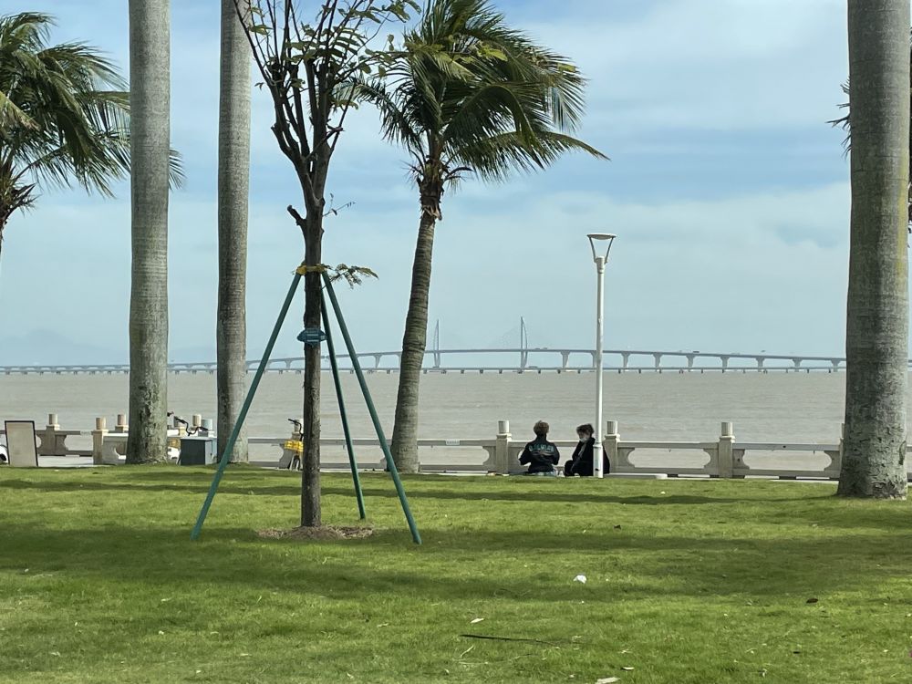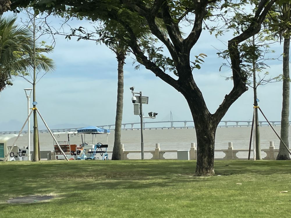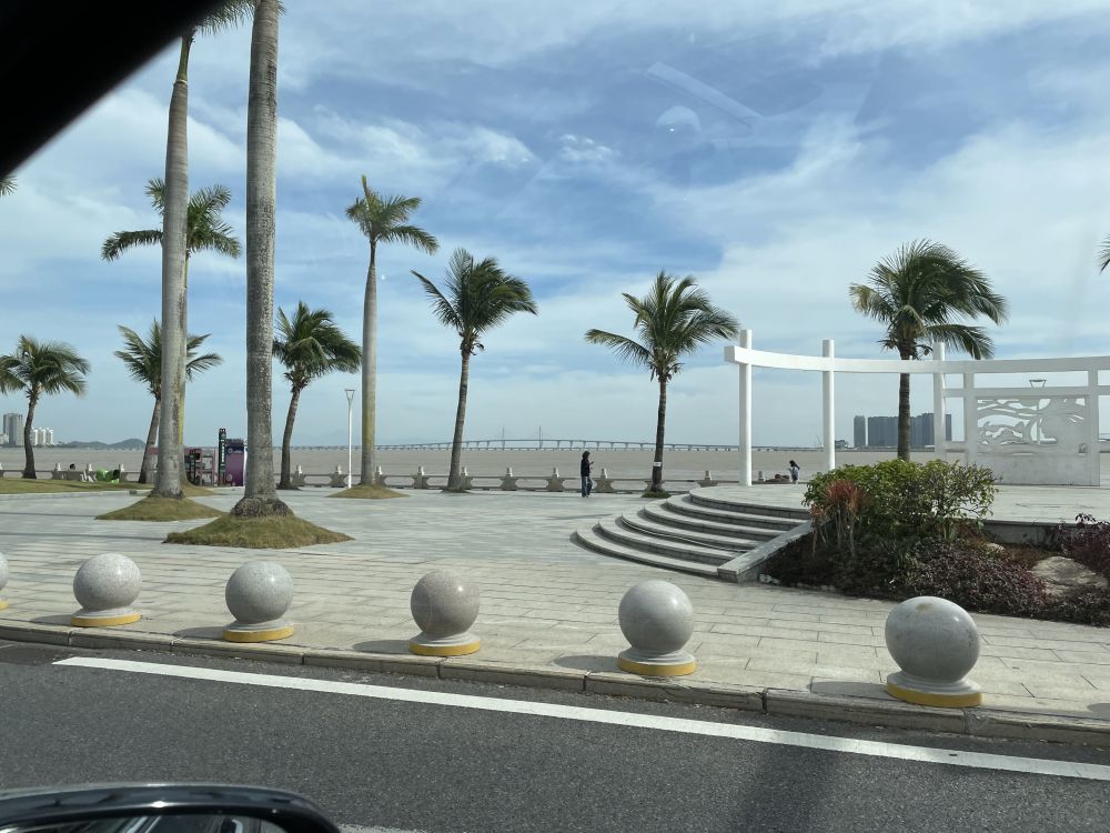 到达珠海情侣南路吃午饭。从这里远眺港珠澳大桥。
