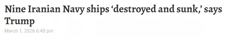 "We are going after the rest — They will soon be floating at the bottom of the sea, also! In a different attack, we largely destroyed their… pic.twitter.com/xF0nTpjTFE — Eric Daugherty (@EricLDaugh) March 1, 2026