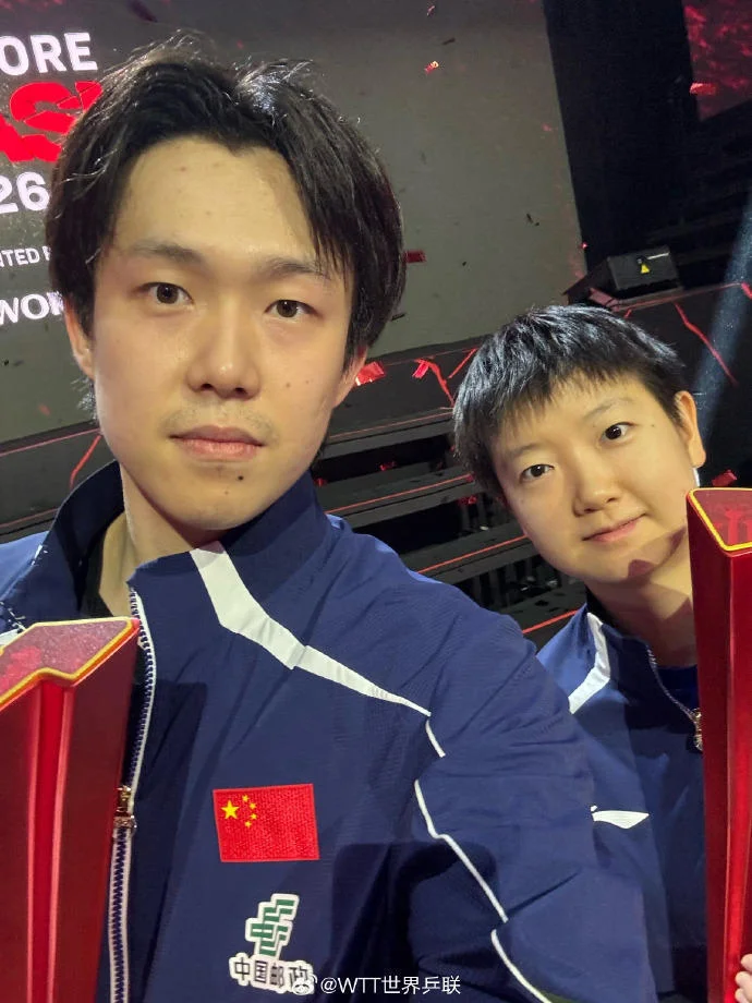 3月1日,@WTT世界乒联 发布了一张王楚钦和孙颖莎的自拍照片,并配文:
