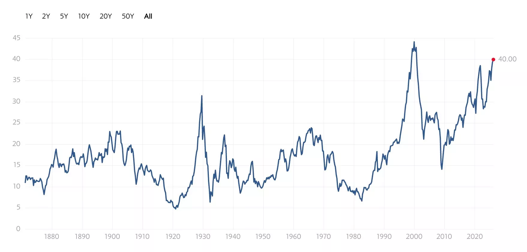这一情形并非孤立——上周美国生产者价格指数(PPI)数据意外强劲,制约了美联储的宽松空间;私人信贷市场出现早期裂缝,银行股遭到大力抛售。分析人士指出,在当前席勒市盈率约40倍的高估值水平下,多重压力叠加将严重压缩市场容错空间,一旦流动性事件触发,各类资产相关性将趋向于一。