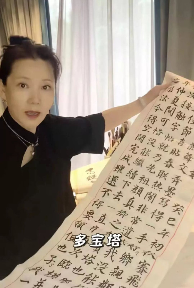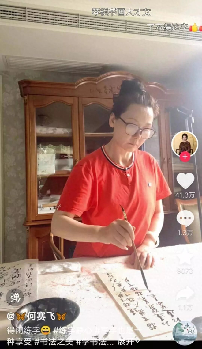 除了爱唱戏之外,现在的何赛飞把其他的时间用在了练字上面,在何赛飞晒出的视频中,她聚精会神握着毛笔,写毛笔字,