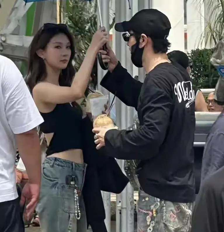 照片里,这位姑娘身材纤细、颜值在线,气质相当出众,而黄晓明的表现更是直接拉满了 "殷勤值"——主动给女方撑伞,生怕太阳晒到对方,两人同框一把伞,肩膀挨着肩膀,举止亲密又自然,完全不像是普通朋友。