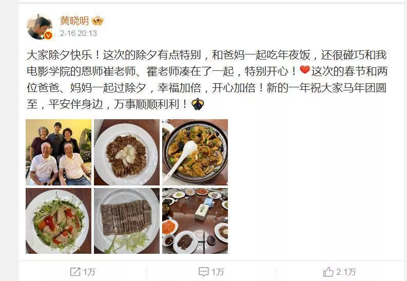五个人围坐一桌,桌上摆着十道精心烹制的菜肴,举杯欢庆的画面满是温情,看得出来黄晓明这年过得惬意又舒心。本以为这 "各自安好"的剧本会一直演下去,没想到刚过初九,剧情就来了个大反转。