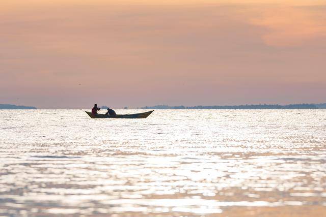 ↑2月27日,在肯尼亚基苏木,渔民于日落时分驾船在维多利亚湖上捕鱼。 新华社记者 郑梦雨 摄