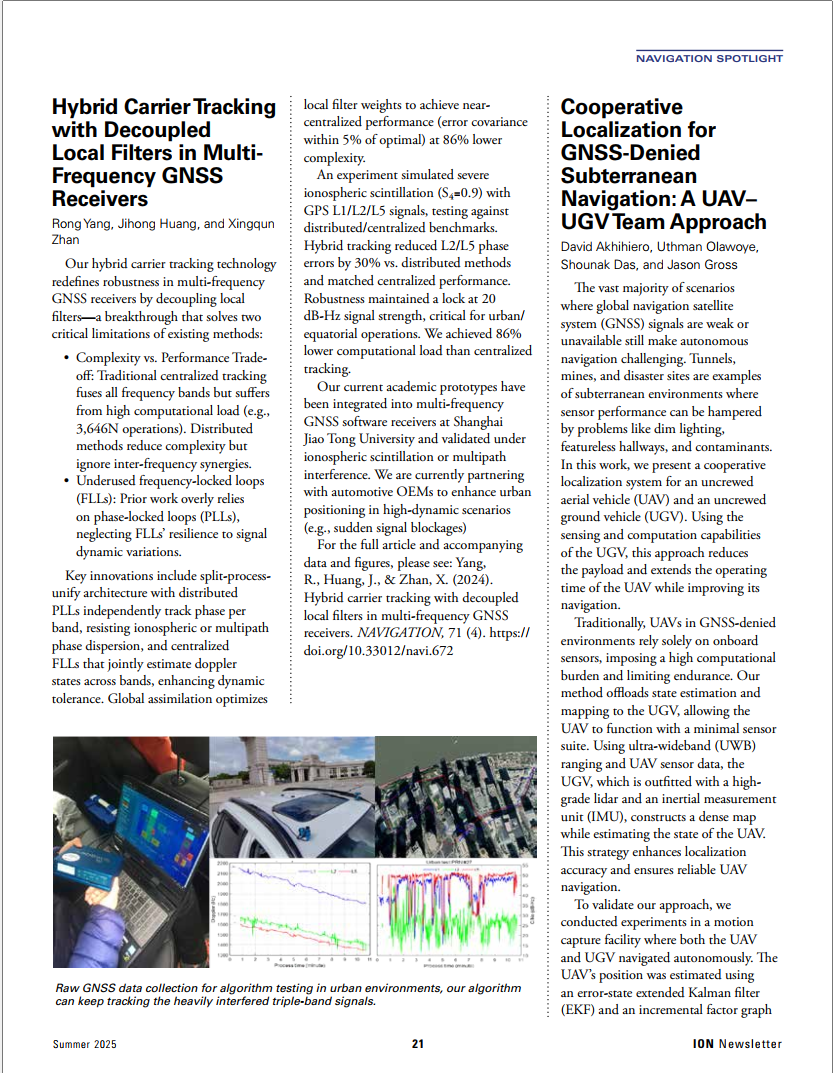 近日,美国导航学会(Institute of Navigation, ION)正式公布2025年度“Per Enge Early Achievement Award”(早期成就奖)