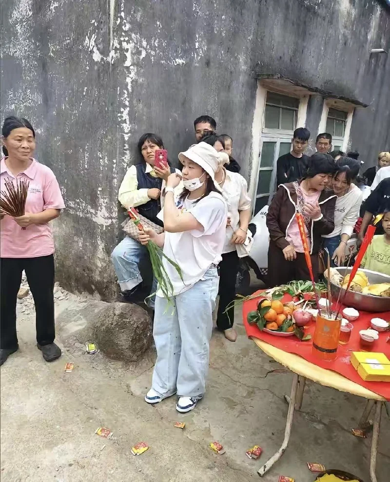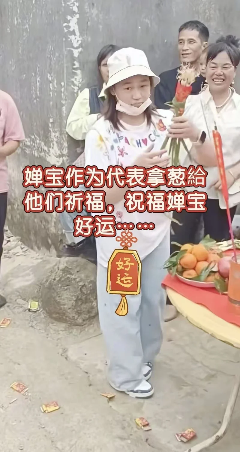 全红婵难得回家做年例,妈妈让她当家里的代表,拿着蒜苗为全家祈福。每个地方的习俗不一样,有的地方是拿纸钱包裹着香,有的地方是拿钱包裹着鸡毛,她们的是拿蒜苗跟红包。