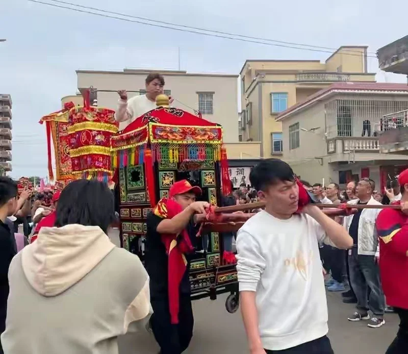 年例这天必须用轿子抬菩萨出来游神,村民们会摆上生鲜果蔬和茶水拜神,期待一年风调雨顺,发财平安。可以说年例比春节还要热闹,湛江的年例向来都是出了名的。