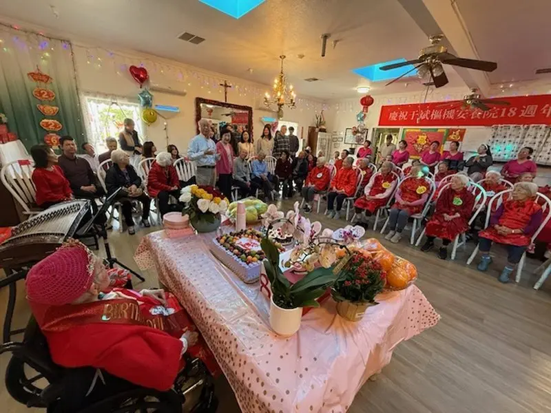 于斌枢机纪念安养院为洛杉矶华裔人瑞施冰娥举办110岁庆生会,老寿星来自全美各地30多位家人和安养院全体耆老及工作人员共襄盛举,场面温馨。(记者杨青╱摄影)
