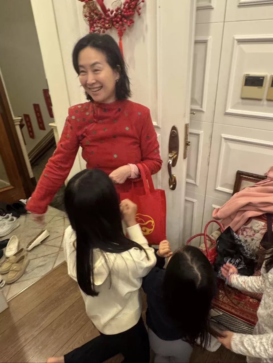 回头来说,何超琼身家百亿,现实中的确是孤家寡人,不过她也不孤单,在工作之余,她也有很多圈内朋友,另外还有三个干女儿,逢年过节,她也是会和干女儿全家一起庆祝。在这个春节期间,何超琼不就去了干女儿的家里拜年?当天她还穿上了红色的改良旗袍,手上还拎着一个装满了红包的袋子,一进门干外孙女们就蜂拥而至,好不热闹。说起来,何超琼如今也是三代同堂,有三个干女儿,有几个干外孙,外孙女,事业有成,也不少所谓的家庭温暖。