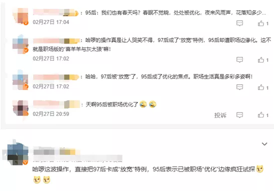 有网友调侃:“哈啰这波操作,直接把97后卡成‘放宽’特例,95后表示已被职场‘优化’边缘疯狂试探。”也有观点认为,互联网产品迭代快、市场变化快,企业更青睐学习能力强、适应力高、能承受高强度工作的年轻人,也无可厚非。