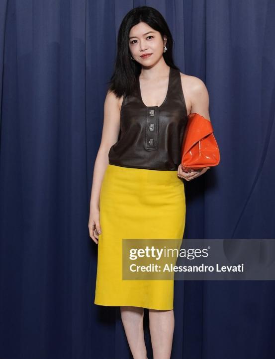在Ferragamo大秀上,她身穿皮质马甲搭配亮黄色半身裙,真是姐味十足啊。