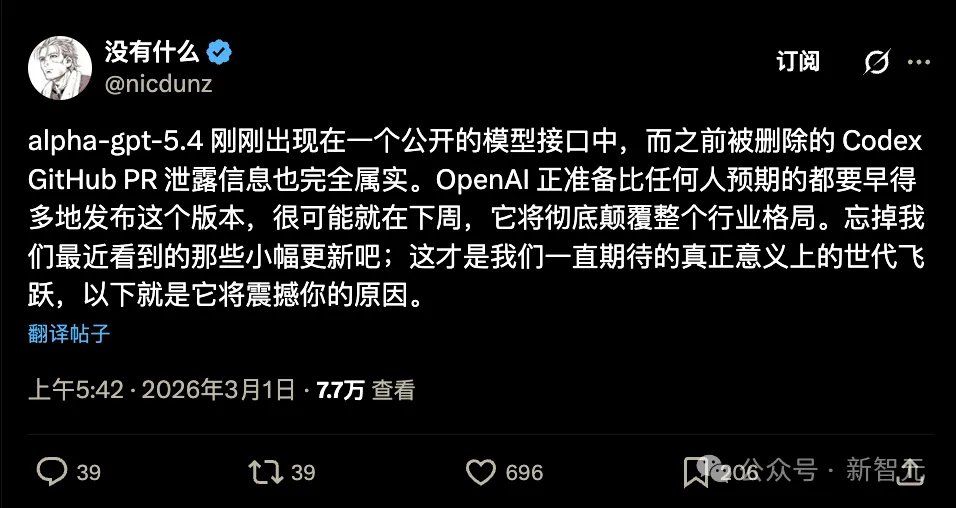 几乎在同一时间,带有「alpha-gpt-5.4」标识的公共模型端点以及下拉菜单截图在社交平台X上疯狂流传。