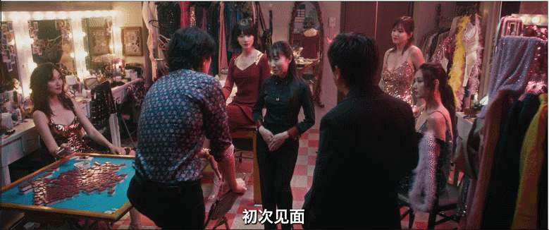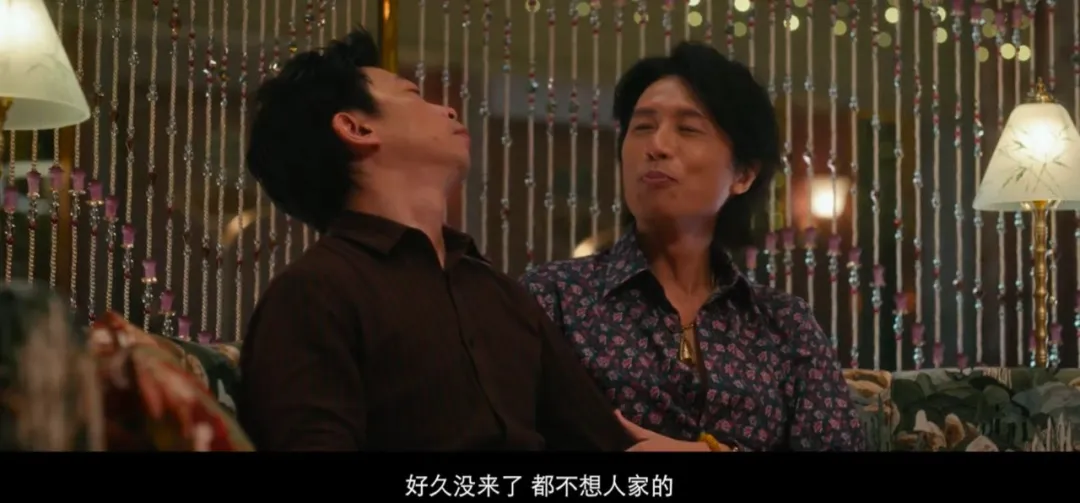 所以在顾客和小姐的互动上,电影基本去除了擦边元素,把主要篇幅都花在了两者有趣的交锋上,贡献了一大堆的笑点。比如一根香蕉几百港币、一个西瓜上千港币的离谱溢价,还有全片最好笑桥段之一的“服务小妹假扮日本人”。