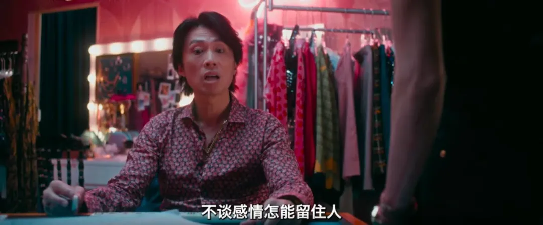 而到了后半段,V姐又展现出柔软温情的一面。她和欢哥一样在意人情,只是形式不同。她深知夜场的艰辛和不易,会给手下小姐职场方向建议,还会帮她们挑选合适的衣服。对于欢哥她虽然对外宣称两人水火不容,但内心知道自己永远忘不了他,嘴上的狠话只是为了帮自己斩断旧情。