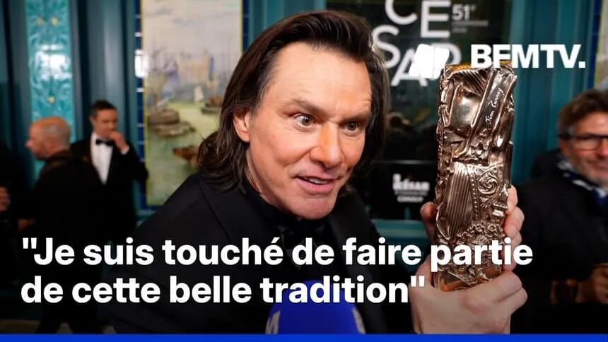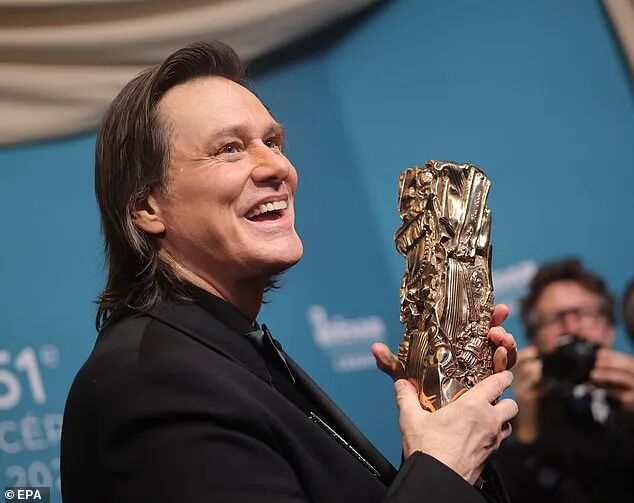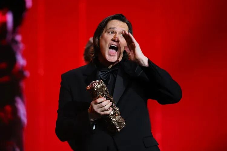 在凯撒奖颁奖典礼的高光时刻,金·凯瑞上台领取那座沉甸甸的奖杯。