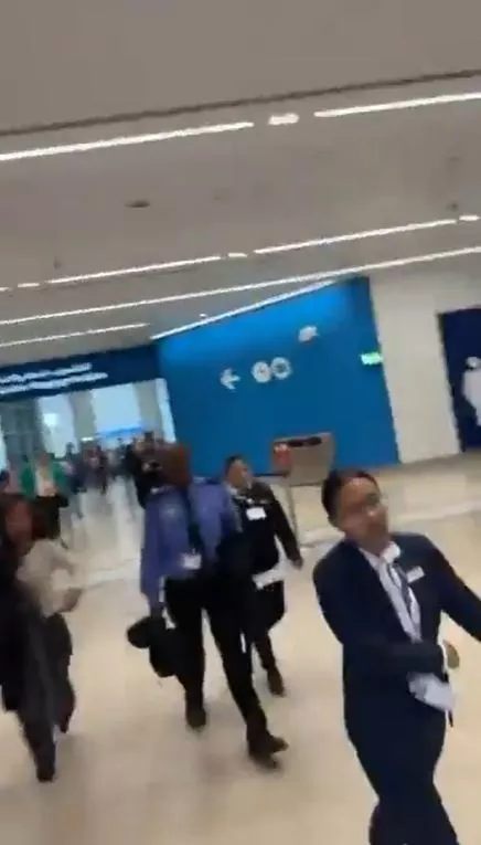 迪拜国际机场遭伊朗“烈士无人机”击中,机场内一名人员受伤满脸是血的画面在社群疯传。(X@iihtishamm)