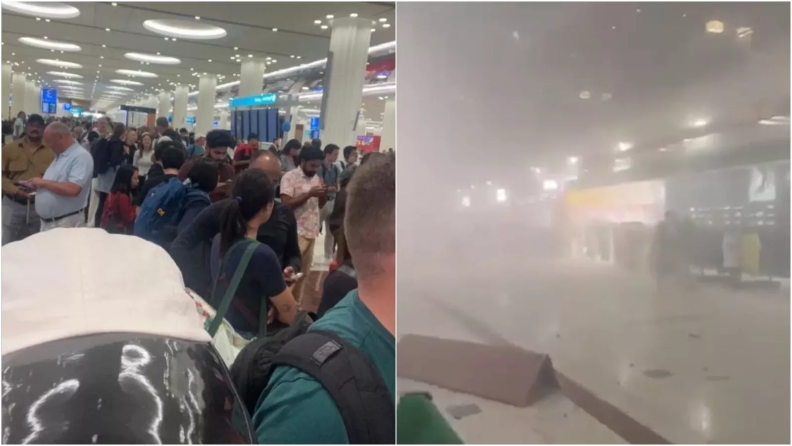 迪拜机场遇袭后,现场烟雾弥漫。(视频截图)