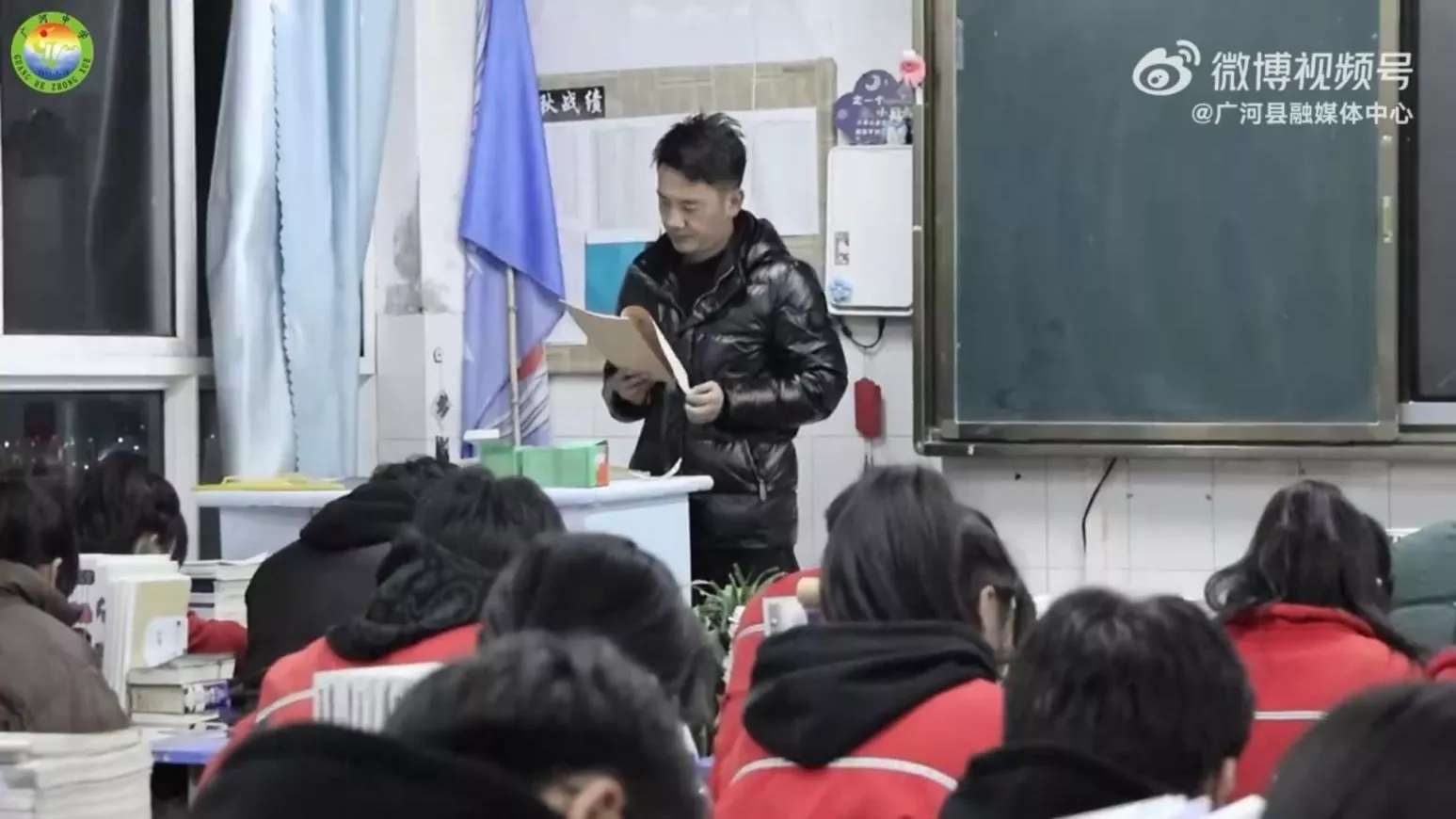 该中学宣传片强调学生入夜后依旧在教室奋发念书。(微博/广河县融媒体中心)