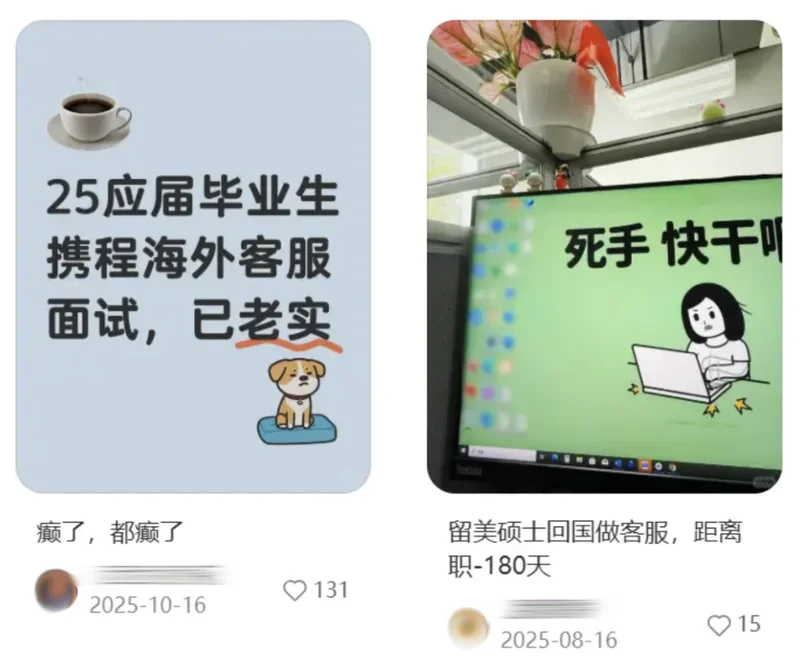 更直接的原因是,留学经历能派上用场。去年,有自称在美国QS200大学毕业回国的硕士入职了携程的英文客服岗。她分享自己做客服的理由:因为有海外生活的经历,英语不错,解决海外用户的问题时更顺手,“从客人反馈中能感受到自己的价值”。