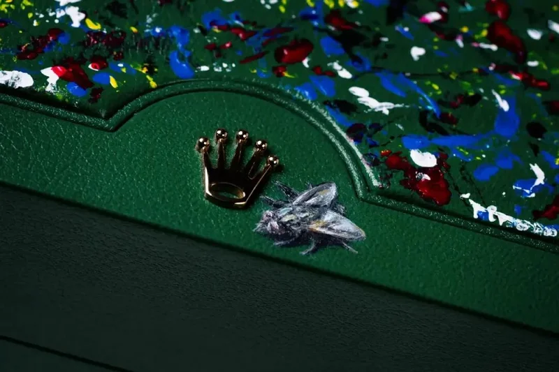 他们找来一只原装劳力士恒动手表进行彩绘,但执笔“艺术家”不是人,而是一群苍蝇!