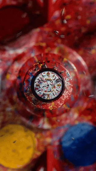 Milfshakes就在食物里加了色素,让苍蝇“吐”出颜色,最后在表盘上留下这些点彩般的抽象图案。