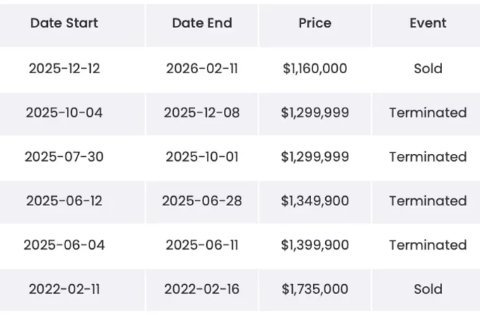 这套房最初在2022年2月以173.5万加元成交,当时需求暴涨,整个地区房价直冲云霄。在随后几年里,这套房多次以不同价格重新挂牌: