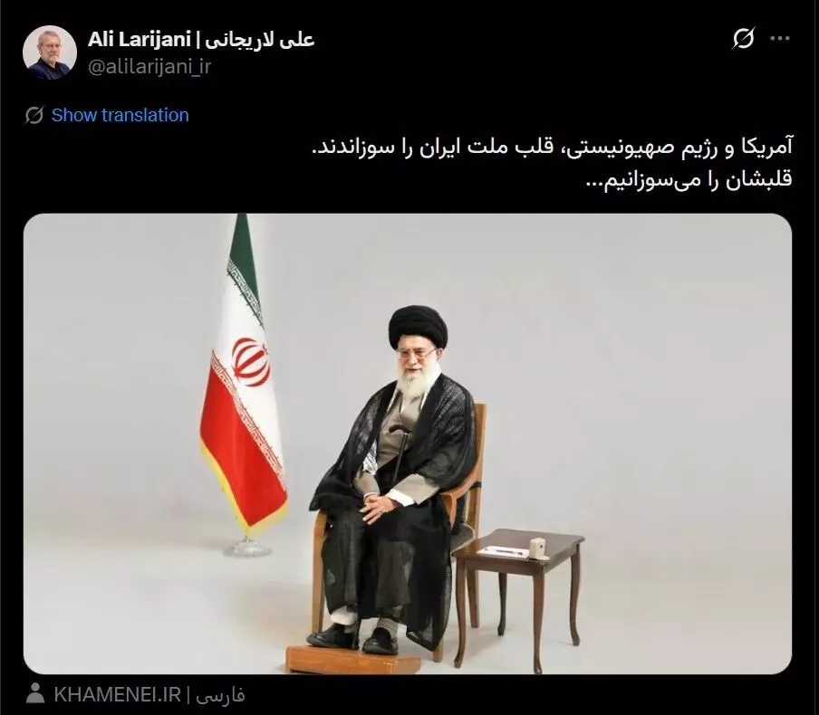 ·拉里贾尼哀悼哈梅内伊的帖子截图。(拉里贾尼个人社交账号)