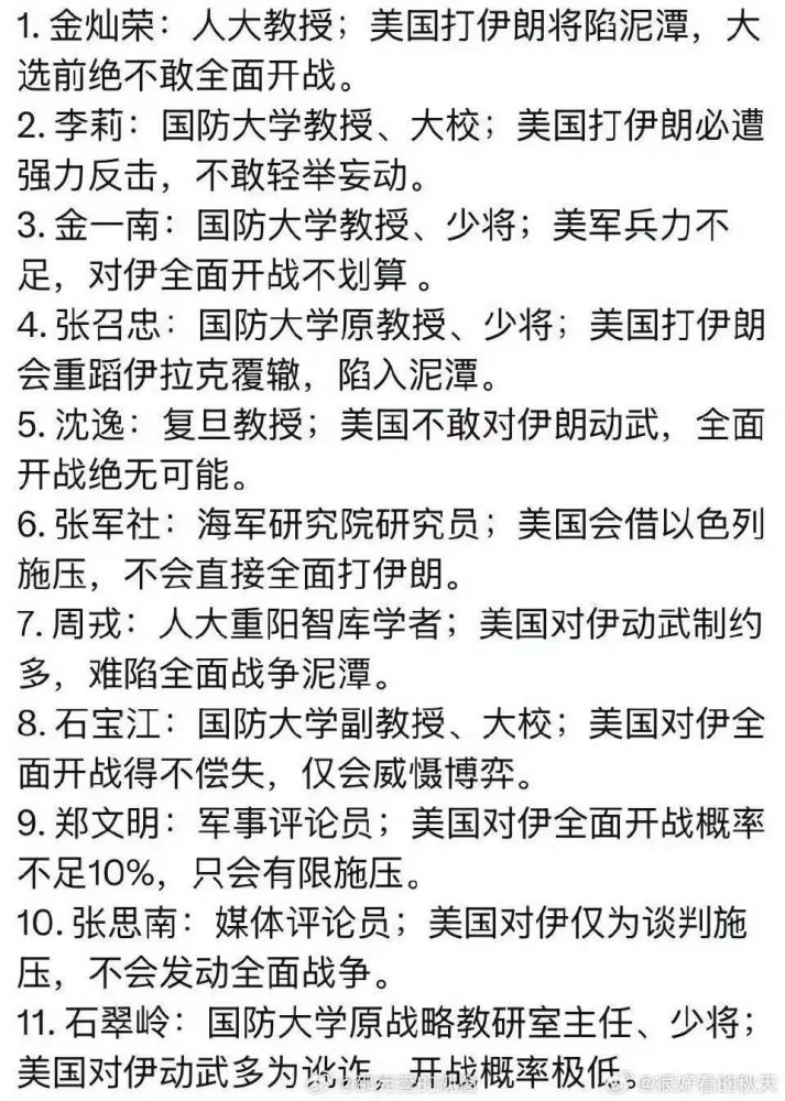 中国砖家关于美国攻打伊郎的分析