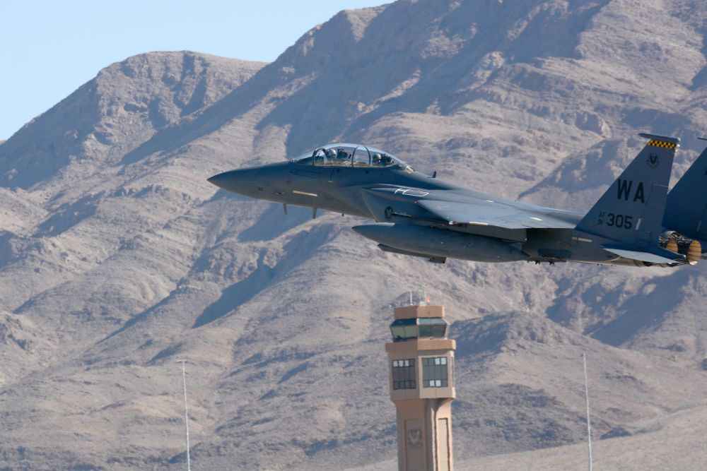 F-15 飞行时,那动静叫一个大,恶狠狠地逼近过来,声音像持续的咆哮的雷声,那阵势比民航机场里拉客的飞机的动静大了太多太多。