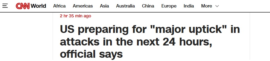美国有线电视新闻网(CNN)周一(3月2日)晚间最新报道,美国一位高级官员,美国正准备在未来24小时内对伊朗发动“重大升级”的袭击。