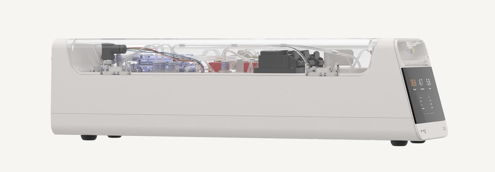 密封舱中的神经元在硅芯片上生长,由培养液提供营养,芯片电极与神经结构之间可以发送和接收电信号。图片来源:Cortical Labs网站