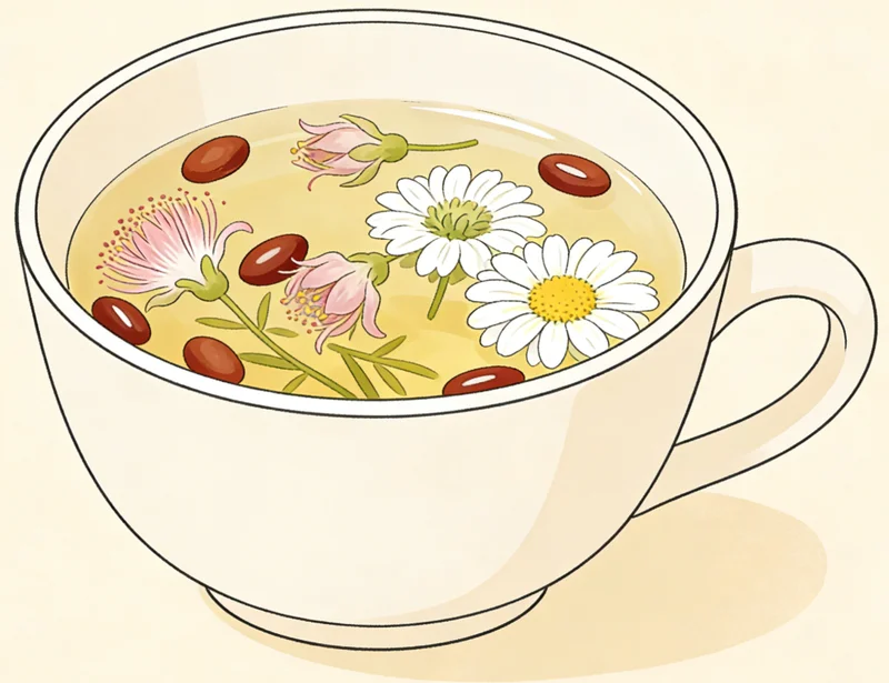做法:取酸枣仁(养心补肝)、合欢花(疏肝理气、解郁安神)、白菊花(清热、清肝火)各10克,加水煮制成代茶饮。