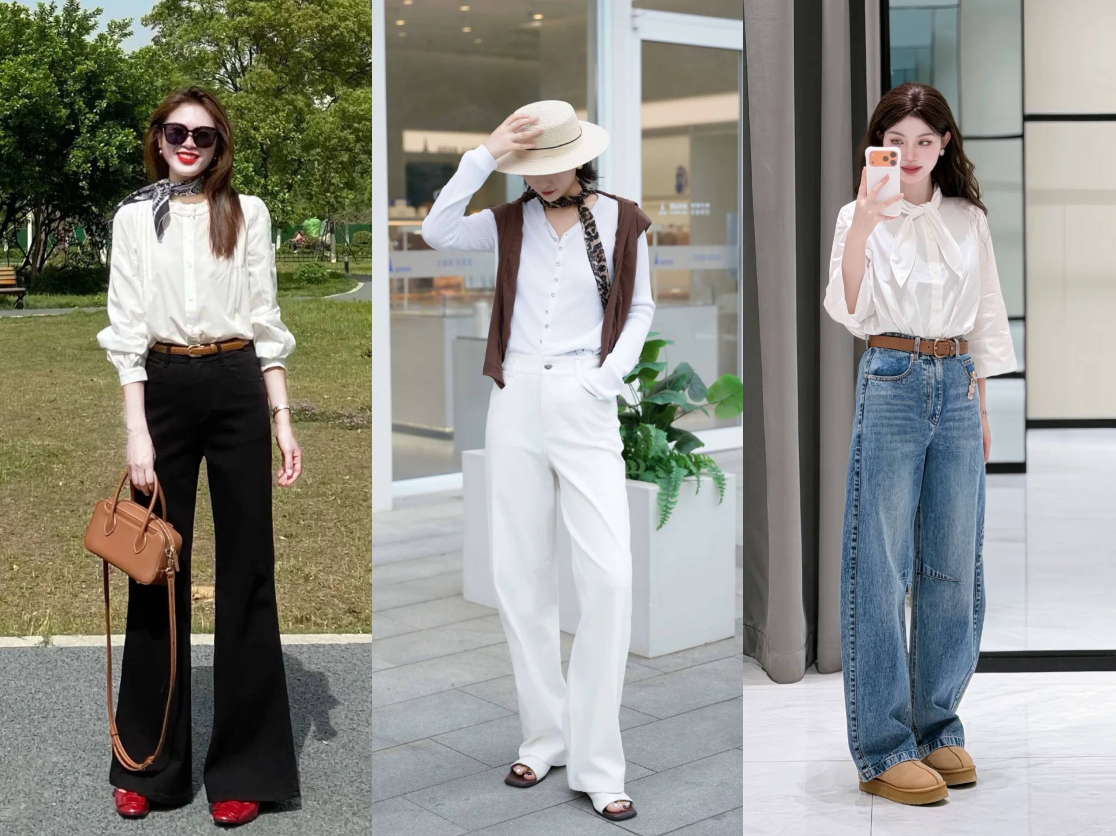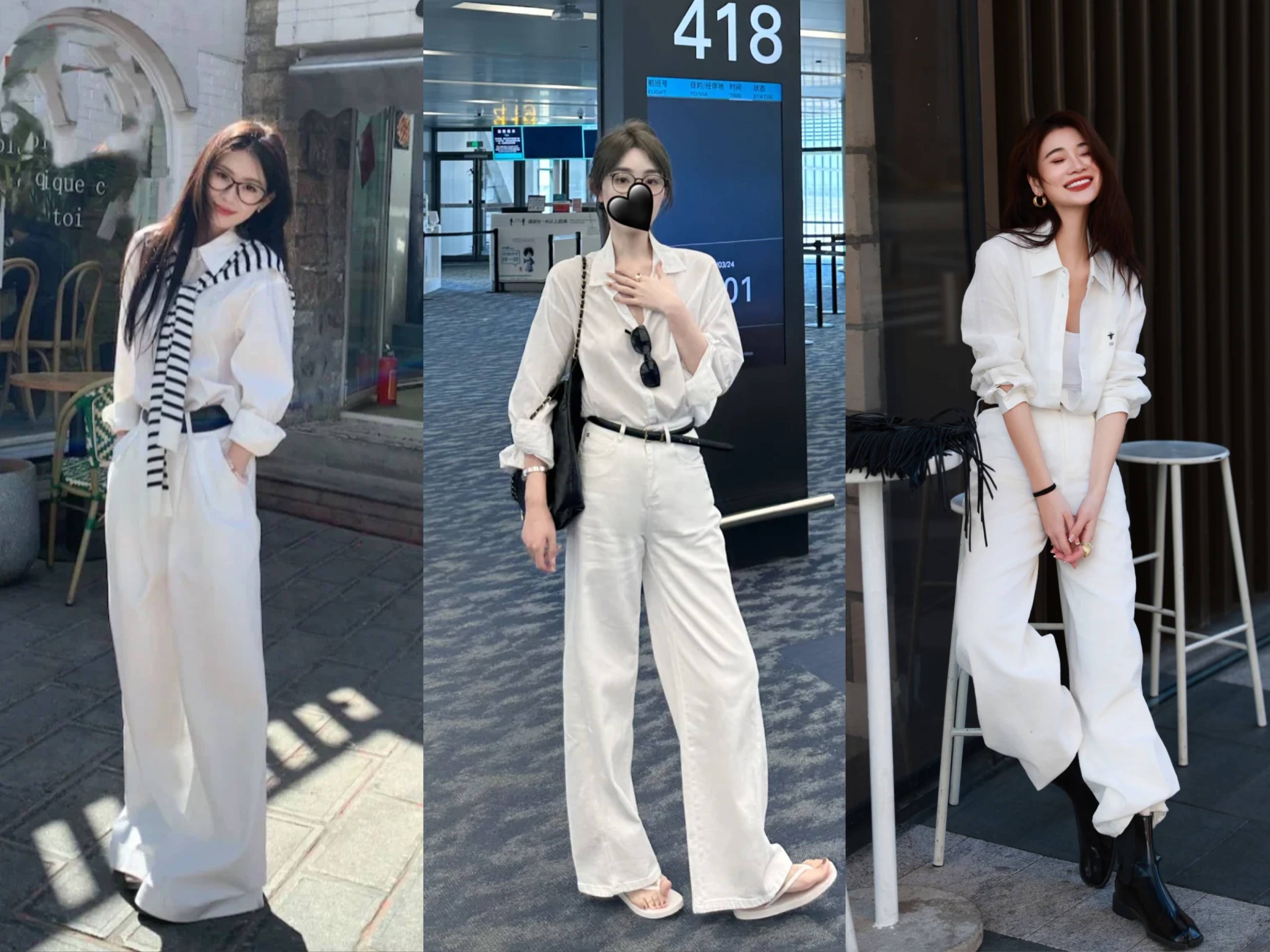同色系穿搭最是简约高级,白衬衫+白色阔腿裤,懒人必备,简单不出错。